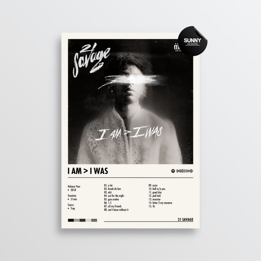 21 Savage - I Am> I WAS | Album Cover Poster